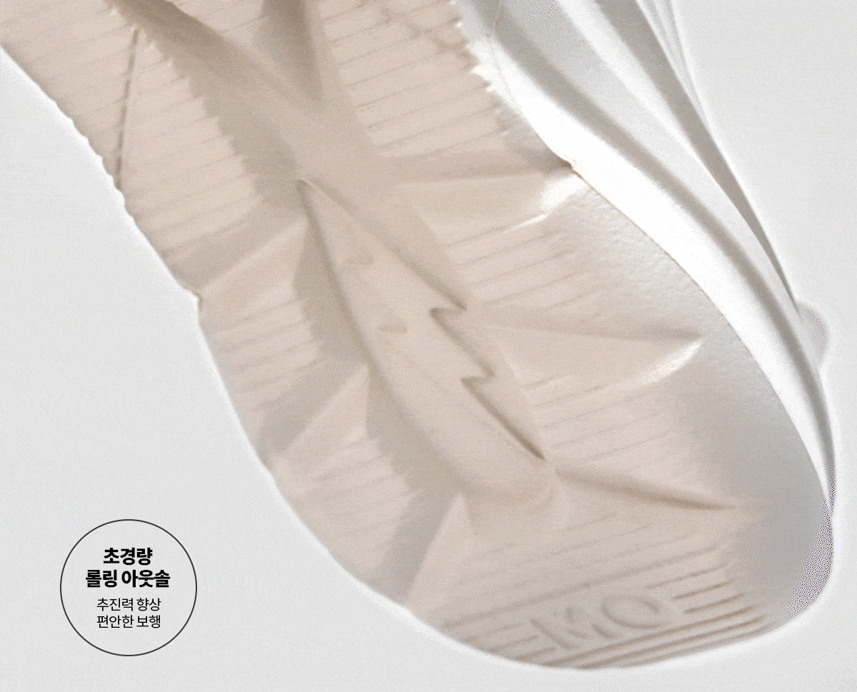 발의 피로 누적 방지를 돕고 발을 지지해주는 아치서포트 아치형의 풋베드가 발을 안전하게 서포트함과 동시에 바닥의 동그란 반사구 지압이 걸을 때마다 발에 피로가 쌓이는 것을 방지해 주어 매 순간 가벼운 발걸음을 느낄 수 있습니다. 더 편안한 착용감을 위한 더 새로운 금형 설계! 더욱 안정적이고 편안한 착용감을 제공하기 위해 더욱 새롭게 디자인 된 인체공학적 금형 설계 발등 덮개 부분의 패턴, 어퍼, 미드솔 모양을 변형하여 몸의 하중을 발바닥 전체에 고르게 전달하고 발의 아치를 완벽하게 지지하여 체중 분산 효과까지 좋습니다. 발이 받는 압력을 더욱 공평하게! 추진력+보행성+안정성 업그레이드 더 가뿐하게 서고, 걷고, 뛸 수 있는 "초경량 아웃솔" 발바닥에 가해지는 압력을 균등하게, 넓게 분산해 주는 초경량 아웃솔 으로 더욱 편안하고 가벼운 보행감을 느껴보세요.