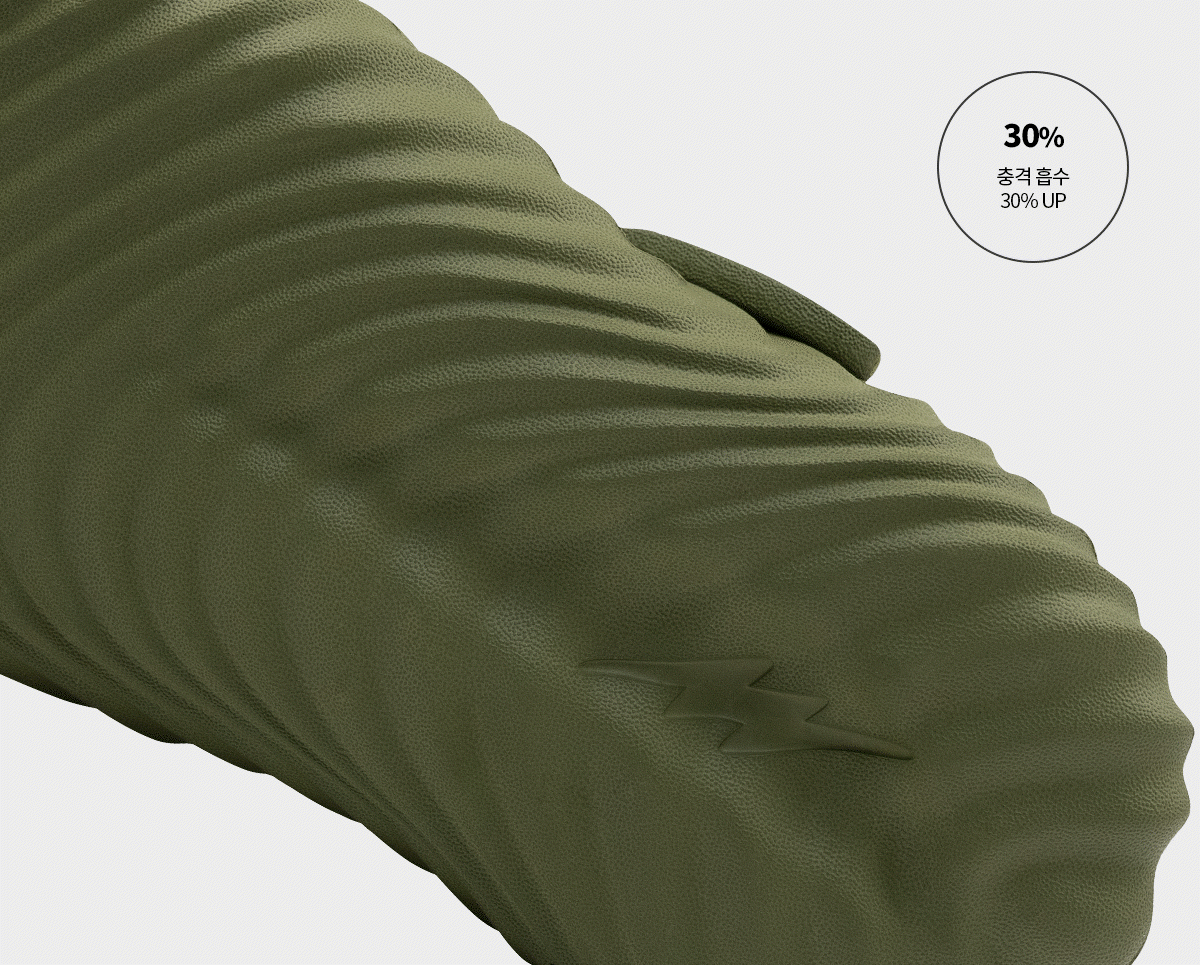 발 피로도 감소 발목이나 관절이 받는 무리한 힘을 덜어줄 수 있도록 복원력을 높인 컴파운드 배합 소재로 충격을 흡수하는 쿠셔닝 30% 업그레이드 완료!