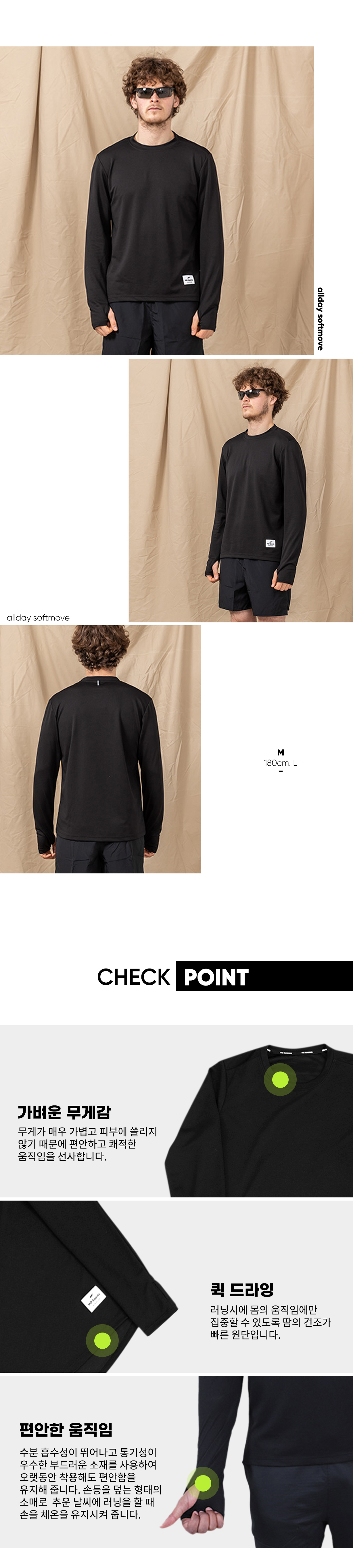특히 달리기나 하이킹과 같이 체온이 쉽게 오르는 장거리 운동을 할 때 착용하기 좋은 러닝 긴팔 티셔츠 입니다.