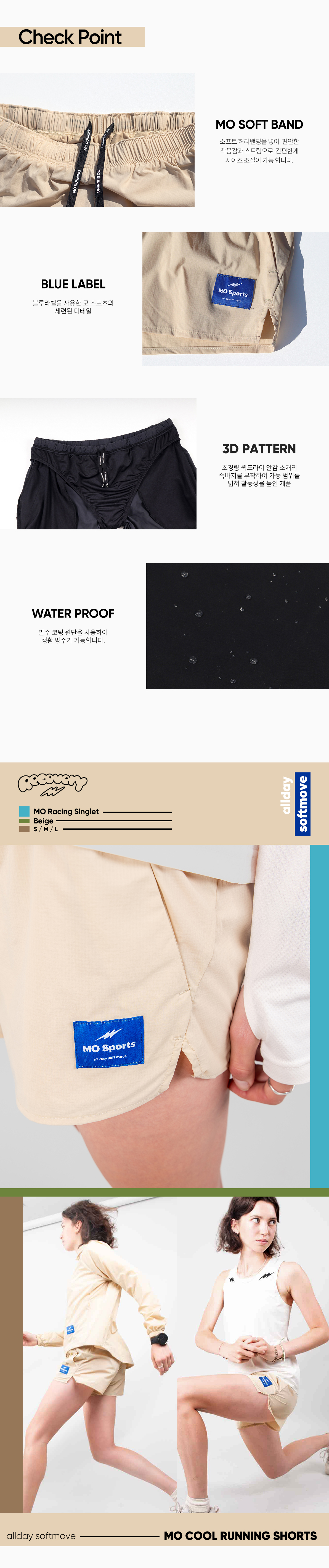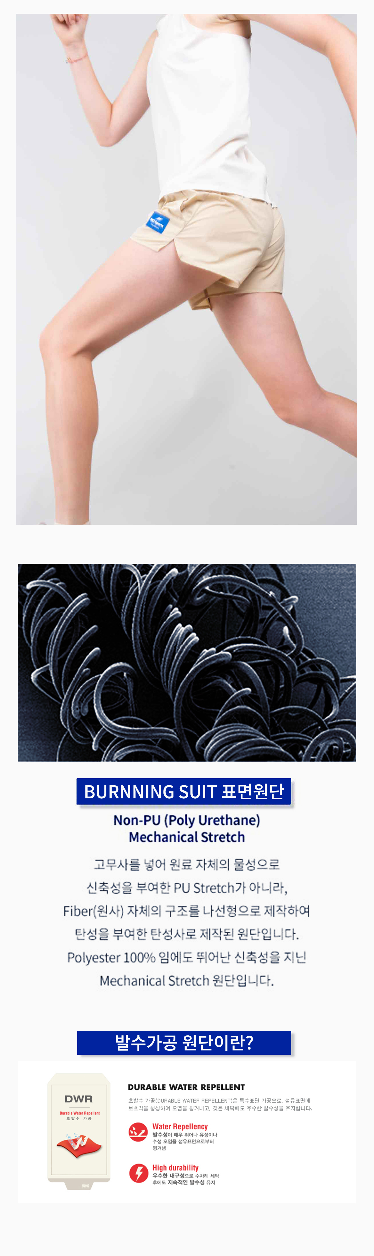 러닝 쇼츠 라인업은 메케니컬 스트레치 원단 사용과, 러닝 자세에 맞춘 입체 패턴과 발수 코팅으로,