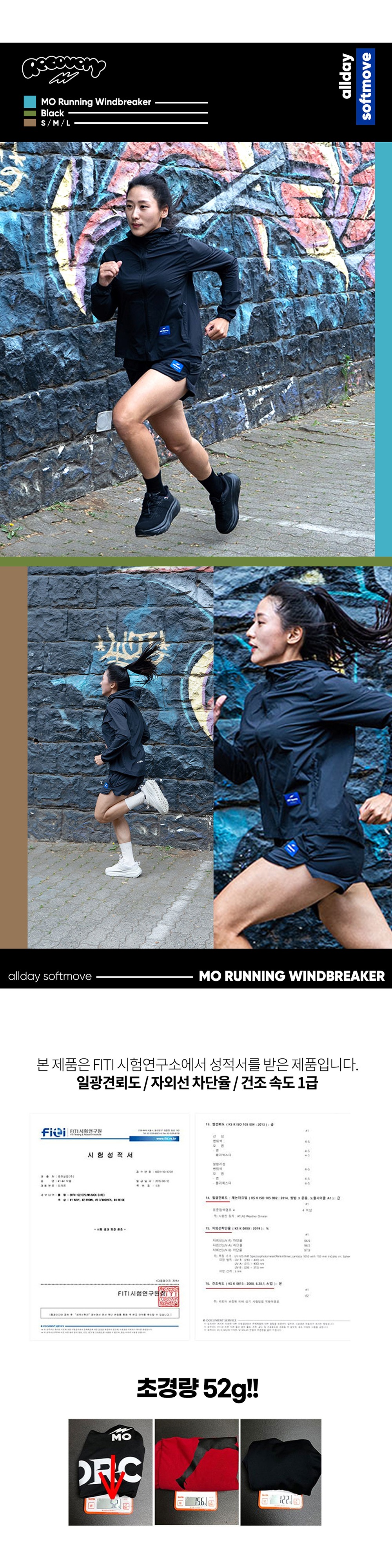 모 러닝 윈드브레이커(MO RUNNING WINDBREAKER)는 야외활동 및 고강도 운동에 최적화 된 러닝 바람막이 입니다.
